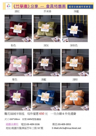 (還有竹炭對枕,天然乳膠枕,超棉柔暖活舒適雕花羊糕毯優惠花色在訂購單裡面唷)