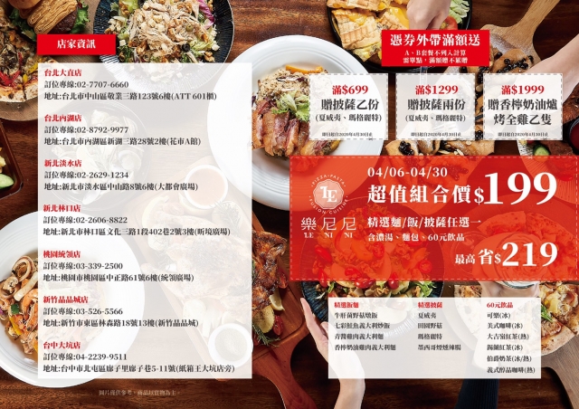這裡是新竹晶品城樂尼尼義式餐廳,附件是餐廳4月相關優惠活動,